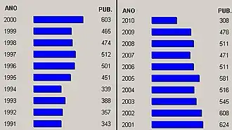 Um levantamento feito no SciFinder buscando o tópico "linear free energy relationship" mostrou que o número de publicações nestas duas últimas décadas é bastente expressivo.