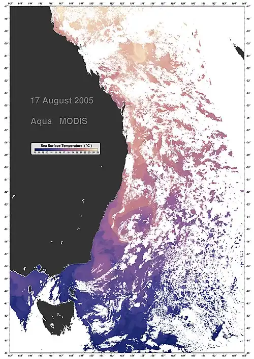 - ↑ East Australian Current, NASA Earth Observatory. (em inglês)