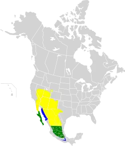 Passa o inverno no noroeste do México, desde a Baixa Califórnia, Sonora e Chihuahua, ao longo da costa a sul de Oaxaca e no sul da Califórnia. Está presente durante todo o ano nas regiões central e sul do México. Pode ser encontrada casualmente em toda a parte ocidental dos Estados Unidos e também no Minnesota, Wisconsin e Louisiana.[2]