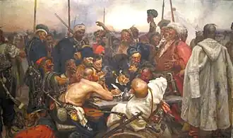 Cossacos escrevem carta ao Sultão turco retrata uma cena supostamente histórica, situada em 1676, baseada na lenda de os cossacos terem enviado uma resposta a um ultimato do Sultão do Império Otomano Maomé IV, o Caçador.
