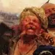 A imagem do cossaco com uma cabeça careca e nuca expressiva era o chefe de segurança George P. Alekseev. Inicialmente, este indignou-se com Repin e rejeitou a oferta para posar para ele numa atitude tão feia. Para ajudar o artista, Dmytro Yavornytsky convidou Alekseev a ver sua coleção de moedas e, enquanto Alekseev observava a coleção, o artista estava sentado atrás dele a fazer o esboço. Vendo-se na imagem, George Petrovich ficou muito aborrecido com os dois. |