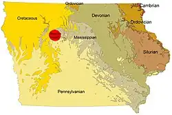 - ↑ Pfeiffer, Eric. «Ancient meteorite standing between one Iowa town and its water supply». Yahoo! News. Consultado em 17 de fevereiro de 2012