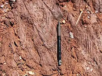 - ↑ a b Da Mommio, Alessandro. «Crenulation cleavage» [Clivaje de crenulación]. alexstreckeisen.it (em inglês)
