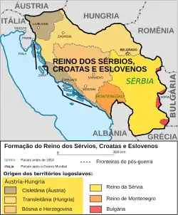 O novo reino foi formado a partir dos antigos Estados independentes monárquicos do Reino da Sérvia e o Reino de Montenegro, bem como uma quantidade significativa de território que tinha sido anteriormente parte do Império Austro-Húngaro. As terras da Áustria-Hungria que formaram o novo estado incluíam a Croácia-Eslavônia e Voivodina da parte húngara do império, Carniola, parte da Estíria e da Dalmácia do lado austríaco, além da província imperial da Bósnia e Herzegovina que tinha sido governada conjuntamente pelas duas metades do império.