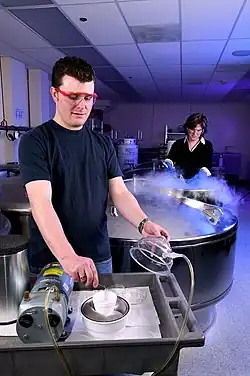 Criopreservação ou crioconservação é um processo onde células ou tecidos biológicos são preservados através do congelamento a temperaturas negativas, geralmente entre -156 e −196 °C (o ponto de ebulição do nitrogênio líquido ou em fase de vapor).[1]