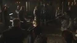 ![]() Tyrion Lannister é cercado por vassalos da Casa Tully a mando de Catelyn Stark. | |||