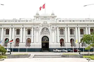 ![]() ![]() De cima para baixo: Casa de Pizarro, sede da Presidência do Peru Palácio Legislativo, sede do Congresso do Peru | |||