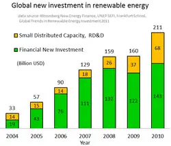 - ↑ Bloomberg New Energy Finance, UNEP SEFI, Frankfurt School, Global Trends in Renewable Energy Investment 2011 Arquivado em 2013-01-13 na Archive.today