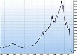 - ↑ Bolsa da Islândia despenca 76,2% na retomada dos negócios. Jornal do Brasil, 14 de outubro de 2008