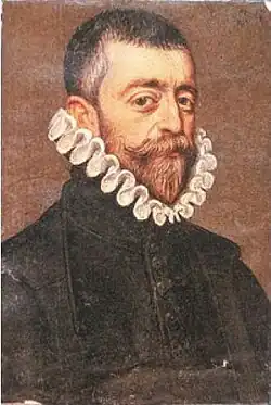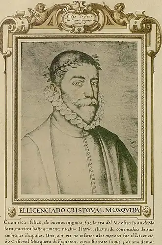 ![]() Cristóbal Mosquera Figueroa (óleo de Felipe de Liaño, 1587, na coleção de Eduardo Jiménez Carlé, Madrid). | |