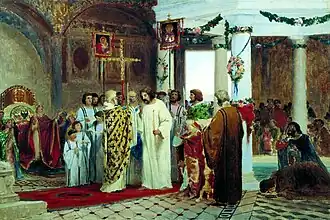 - ↑ Novgorodskaia tretiaia letopis, (PSRL 3), 208. On the initial conversion, see Vasilii Tatishchev, Istoriia rossiiskaia, A. I. Andreev, et al., eds. (Moscow and Leningrad: AN SSSR, 1962), vol. 1, pp. 112-113.