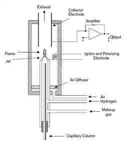 - ↑ Poole, Colin F. (novembro de 2015). «Ionization-based detectors for gas chromatography». Journal of Chromatography A (em inglês): 137–153. doi:10.1016/j.chroma.2015.02.061. Consultado em 22 de novembro de 2020