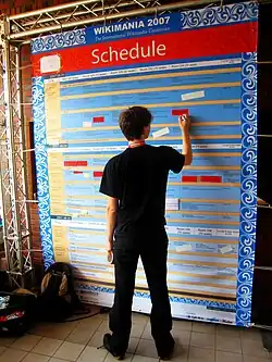 Um cronograma, como uma ferramenta básica de gerenciamento de tempo, consiste em uma lista de horários em que possíveis tarefas, eventos, ou ações se destinam a ocorrer, ou de uma sequência de eventos na ordem cronológica em que tais coisas devem ocorrer. O processo de criação de um cronograma — decidindo como ordenar essas tarefas e como comprometer recursos entre a variedade de tarefas possíveis — é chamado de escalonamento,[1][2] e uma pessoa responsável por fazer um cronograma específico pode ser chamada de escalonador. Fazer e seguir horários é uma atividade humana antiga.[3]
