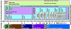 Tabela sobre as várias épocas da Fé Bahá'í, escrita por Eric. Categoria Coffinet: Bahaísmo