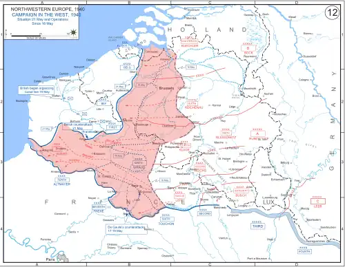 : Os alemães ganham a Batalha da Zelândia. - 19: Amiens, França é sitiada pelas tropas alemãs; As forças de Erwin Rommel cercam Arras; Outras forças alemãs alcançam Noyelles no Canal.