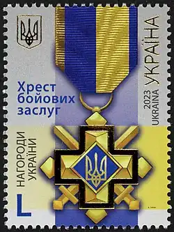 Em 6 de maio de 2022, Volodymyr Zelensky entregou as primeiras condecorações de combate da Ucrânia independente — a Cruz do Mérito Militar. O primeiro condecorado foi o comandante-em-chefe das Forças Armadas da Ucrânia, general Valerii Zalujny, que desde o início da agressão armada da Rússia organizou com sucesso a defesa do país e liderou pessoalmente a resistência heroica das forças armadas à invasão.[7][8]