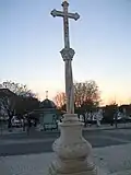 O cruzeiro, em mármore local, é um aproveitamento de peças de diversas origens, possivelmente montado no século XVII.[3][4] O conjunto é composto por dois degraus octogonais e um fuste de três pequenas colunas entrançadas, como elementos originais do século XVI. A urna que se encontra em baixo é nitidamente barroca. A cruz, latina com braços rematados em trevo, tem características mais modernas que os restantes elementos do conjunto, possivelmente do século XVIII.[1][2]