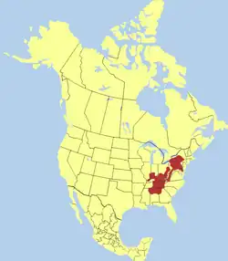 A distribuição de C. a. alleganiensis na América do Norte estende-se desde o sudoeste de Nova Iorque, indo para oeste no sul de Illinois, e para sul até ao nordeste do Mississippi e o norte do Alabama e Geórgia. Uma população disjunta ocorre no centro-este do Missouri. A subespécie C. a. bishopi existe isolada no sudeste do Missouri e no nordeste do Arkansas.