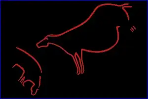No seu interior encontram-se gravuras de cavalos, com outros signos e pinturas rupestres de cor vermelha. As figuras paleolíticas, descobertas por Lothar Bergmann em 1994, têm uma idade de cerca de 20 mil anos (Paleolítico Superior, Solutreano). Pelas suas características excepcionais, chama a atenção a gravura impressionante de uma égua prenhada. Trata-se da figura maior da caverna, com um comprimento de 1,08 m e uma altura de 78 cm.