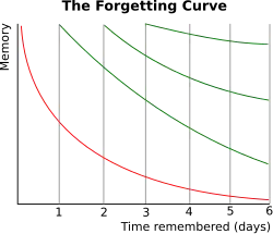 A curva de esquecimento pressupõe o declínio da retenção de memória com o tempo. Esta curva mostra como as informações são perdidas ao longo do tempo quando não há tentativa de retê-las.[1] Um conceito relacionado é a força da memória que se refere à durabilidade que a memória traça no cérebro. Quanto mais forte é a memória, mais tempo a pessoa é capaz de se lembrar dela. Um gráfico típico da curva de esquecimento pretende mostrar que os humanos tendem a reduzir pela metade sua memória do conhecimento recém-aprendido em questão de dias ou semanas, a menos que revisem conscientemente o material aprendido.