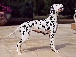 Dálmata(em croata: Dalmatinac) é uma raça de cães oriunda da região histórica da Dalmácia na Croácia, e conhecida por sua característica pelagem branca com pintas escuras.[1] Originalmente utilizado para a caça de aves,[2][3] foi também muito utilizado para acompanhar carruagens nobres na Inglaterra a partir do século XVII,[4] por conta de sua aparência exótica e atleticismo.[5]