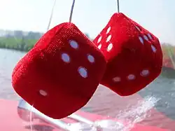Dado de pelúcia é um elemento decorativo utilizado em automóveis, mais precisamente amarrados no retrovisores.