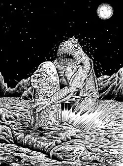 Enquanto o narrador inspeciona o monólito, uma grande criatura horrorizante, coberta de escamas emerge da água, horrorizado pela visão, o marinheiro foge de volta para o barco encalhado. Sua próxima memória é de um hospital em São Francisco, onde ele foi levado após ser resgatado no meio do oceano por um navio americano. Não há relatos de distúrbios no Pacífico, e ele não espera que ninguém acredite em sua incrível história. Assombrado pela memória da criatura, ele teme pelo futuro da humanidade onde tais criaturas subam a superfície. Com a droga que lhe mantinha temporariamente calmo acabando, a narrativa escrita por ele é revelada como uma nota de suicídio.[2]