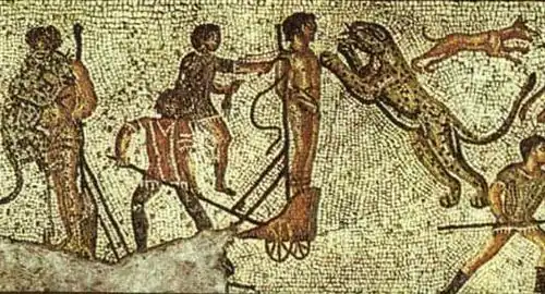 A disseminação da prática de atirar cristãos às bestas foi refletida pelo escritor cristão Tertuliano (século II). Ele afirma que o público em geral culpava os cristãos por qualquer infortúnio geral e, após desastres naturais, gritava "Fora com eles para os leões!" Esta é a única referência de contemporâneos que menciona que cristãos são jogados especificamente para leões. Tertuliano também escreveu que os cristãos começaram a evitar teatros e circos, que estavam associados ao local de sua tortura.[30] " A paixão de São Perpétua, São Felicitas e seus companheiros", um texto que pretende ser uma testemunha ocular de um grupo de cristãos condenados a damnatio ad bestias em Cartago em 203, afirma que os homens deveriam se vestir nas vestes de um sacerdote do deus romano Saturno, as mulheres como sacerdotisas de Ceres e foram mostradas à multidão como tal. Os homens e as mulheres foram trazidos de volta em grupos separados e primeiro os homens, depois as mulheres, expostos a uma variedade de bestas selvagens. As vítimas foram acorrentadas a postes ou plataformas elevadas. Aqueles que sobreviveram aos primeiros ataques com animais foram trazidos de volta para exposição adicional aos animais ou executados em público por um gladiador.[31]