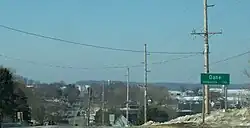 O diagrama seguinte representa as localidades num raio de 16 km ao redor de Dane.