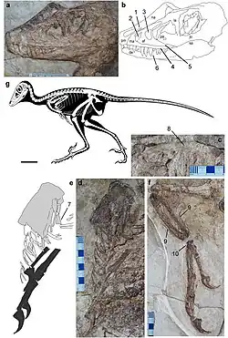 - ↑ a b c d «New Bird-Like Dinosaur Species Found with Remains of Frog in Its Stomach». SciNews. 21 de novembro de 2022
