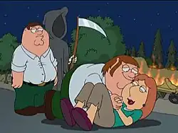 A Morte leva Peter de volta ao tempo, quando ainda namorava Lois. Peter não deu uma boa impressão para o pai da amada, Carter Pewterschdmit, que deu um sumiço em Peter com uma antiga estátua etrusca e ordenou os empregados que dessem um voo da morte a ele.