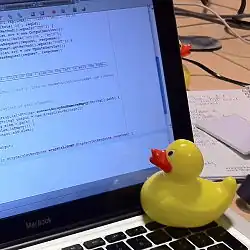 - ↑ Hayes, David (25 de junho de 2014). «The Psychology Underlying the Power of Rubber Duck Debugging». Press Up. Consultado em 3 de julho de 2015