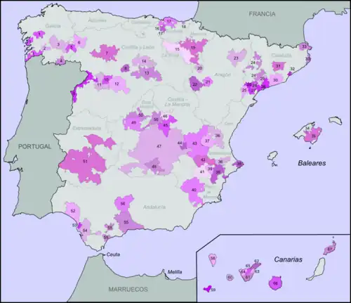 Em 2007, a Espanha tinha 134 regiões vinícolas reconhecidas por meio de denominações de origem. A hierarquia das denominações espanholas de vinhos é a seguinte: