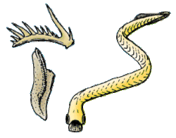 Nas larvas de Caudata, essas estruturas são pontiagudas, mas, após a metamorfose, elas se tornam bicuspidadas.[9]