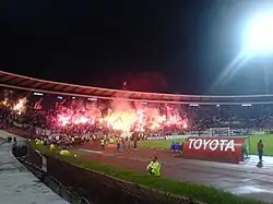 Os torcedores do Estrela Vermelha tradicionalmente ocupam as arquibancadas do norte de ambos os estádios