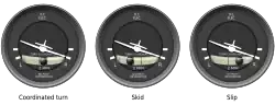 Em voo reto e nivelado, a cauda da aeronave alinha a fuselagem como o vento relativo. Entretanto, no início de uma curva, quando o aileron está sendo aplicado para rolar a aeronave, o aileron causa uma guinada adversa na aeronave. Por exemplo, se a aeronave está em rolagem no sentido horário (do ponto de vista do piloto), a aeronave guina para a esquerda. Esta assume uma atitude de "caranguejo" em relação ao vento. Este fenômeno é conhecido como glissada. O ar está fluindo de forma cruzada sobre a fuselagem. Afim de corrigir esta guinada adversa, o piloto deve aplicar leme (para a direita neste exemplo). Se o piloto aplicar muito leme, a aeronave então irá glissar para o outro lado. Isto é chamado de derrapagem.