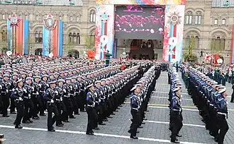 - 4ª semana de abril até 2 dias antes do Dia da Vitória - treinos na Praça Vermelha até o treino geral