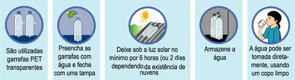 Desinfecção solar da água ou SODIS (SOlar water DISinfection) é um método de desinfecção de água de baixo custo que utiliza os raios ultravioleta do sol e garrafas plásticas do tipo PET transparentes.[1] Segundo pesquisas, o método inativa as seguintes bactérias: Escherichia coli, Vibrio cholerae, Streptococcus faecalis, Pseudomonas aeruginosa, Shigella flexneri, Salmonella typhi, Salmonella enteritidis, Salmonella paratyphi e alguns vírus, tais como: bacteriófago f2, rotavírus, vírus da encefalomiocardite,[2][3] e oocistos de Cryptosporidium SP.[4]