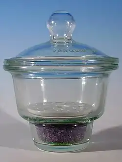 Um dessecador é um recipiente fechado que contém um agente de secagem chamado dessecante. A tampa é engraxada (normalmente com graxa de silicone) para que feche de forma hermética. É utilizado para guardar substâncias em ambientes com baixo teor de umidade[1].