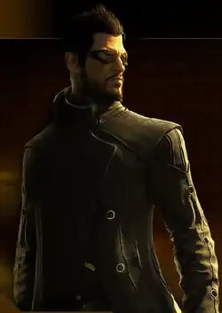 Jacques-Belletête trabalhou nos desenhos dos personagens junto com Murray. O diretor de arte pesquisou moda moderna antes de criar os figurinos dos personagens. Já que se focar apenas no estilo renascentista resultaria na criação de roupas consideradas "muito alegóricas" para funcionar, a equipe as redesenhou para que incorporassem elementos do Renascimento e do cyberpunk enquanto ao mesmo tempo não ficassem clichês ou se assemelhassem com trajes que as pessoas usariam atualmente.[47] Os desenvolvedores olharam para vários protagonistas da ficção cyberpunk, desde Blade Runner até o Deus Ex original, para o desenho de Jensen. Seus principais desejos eram incorporar óculos escuros e um sobretudo.[36] Jacques-Belletête moderou seu desenho para combinar as temáticas renascentista e cyberpunk: ele as definiu como sendo capaz de ver o estado aprimorado de Jensen em combate durante os breves momentos de terceira pessoa enquanto ao mesmo tempo visualizá-lo jantando em um restaurante sofisticado. Um desenho que tinha o personagem usando roupas sem mangas por todo o jogo foi descartado porque isso o fez "parecer um babaca". No lugar, eles criaram um visual sem mangas orientado para a ação e um sobretudo com mangas, gola alta e padrões geométricos a fim de retratar os elementos renascentistas.[47] Demorou dois anos e meio para finalizar o visual de Jensen, com vários desenhos sendo rejeitados por falharem em equilibrar corretamente os elementos cyberpunk e Renascimento.[48]