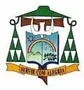 Descrição: Escudo eclesiástico partido, sendo o 1º de blau com um contra-chefe denteado de sinopla, tendo adestrada em chefe uma estrela de sete raios, de argente; o 2º de blau, com contra-chefe de argente, carregado de um ramo de oliveira de sinopla. Brocante sobre a partição, em chefe, uma pomba de argente. Atravessante, sobre os dois campos de blau, um Arco Íris, de sua cor, que toca a borda dos contra-chefes de cada campo. O Escudo assente em tarja branca. O conjunto pousado sobre uma cruz de ouro. O todo encimado pelo chapéu eclesiástico, forrado, com seus cordões em cada flanco, terminados por seis borlas cada um, tudo de verde. Brocante sobre a ponta da cruz, um listel de jalde com a legenda: SERVIRE IN LÆTITIA, em letras de sable.[carece de fontes]