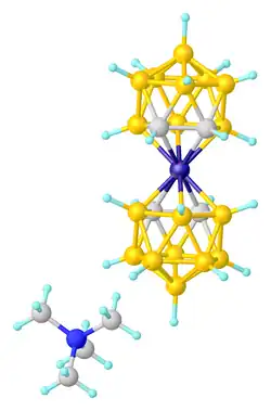 Seu comportamento análogo ao ciclopentadienil também permite a formação de complexos do tipo sanduíche semelhantes, com o íon metálico assumindo a posição do vértice faltante e completando o icosaedro.[2]