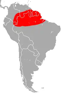 Pode ser encontrada na região amazônica do Brasil, Peru, Colômbia, Venezuela, Guiana, Suriname e Guiana Francesa.[4]