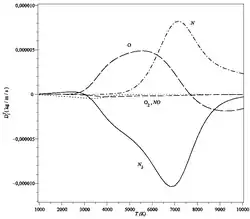 Coeficientes de difusão térmica vs. temperatura, para o ar à pressão normal