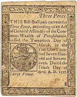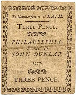 - ↑ Kenneth Scot, Counterfeiting in Colonial America (Philadelphia: University of Pennsylvania Press, 2000), 259–60.