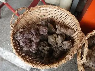 Tubérculos de ube colhidos.