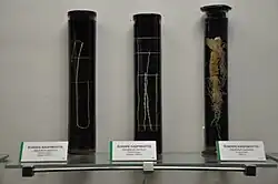 | Exemplares de Dipylidium caninum, principal representante do gênero Dipylidium. | |