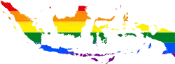 86% dos cidadãos indonésios se identificam como muçulmanos.[89] De acordo com o Ministério da Saúde do país, em 2012, a Indonésia tinha cerca de 1 milhão de homens que fazem sexo com homens, assumidos ou não. Mais de 5% deles são diagnosticados com AIDS. Estima-se que a Indonésia tenha cerca de 31 mil mulheres transexuais, e que a comunidade LGBT constitua cerca de 3% da população indonésia, levando a um número de cerca de 8 milhões de pessoas.[90] A política familiar das autoridades, a pressão social para casar e a religião fazem com que a homossexualidade geralmente não seja apoiada.[89] Tanto os muçulmanos modernistas quanto os tradicionalistas, bem como outros grupos religiosos, como os cristãos, especialmente católicos romanos, geralmente se opõem à homossexualidade. Muitos grupos fundamentalistas islâmicos, como a Frente de Defensores Islâmicos (FPI), são abertamente hostis às pessoas LGBT, atacando as casas ou trabalhos daqueles que acreditam ser uma ameaça aos valores do Islã.[50]