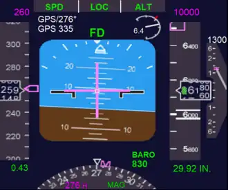 A forma exata do diretor de voo varia conforme o tipo do instrumento e/ou fabricante da aeronave e seus aviônicos.