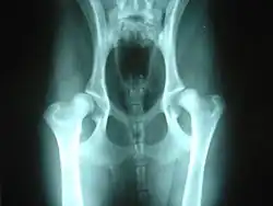 A displasia coxofemoral é caracterizada por uma instabilidade na articulação coxofemoral (a conexão entre a cabeça do fêmur, ligamento e acetábulo) causando gradual perda da cartilagem e por consequência o desgaste e deformação da cabeça do fêmur e do acetábulo, causando dor e dificuldade de locomoção.[1] Pode ser hereditária ou adquirida.